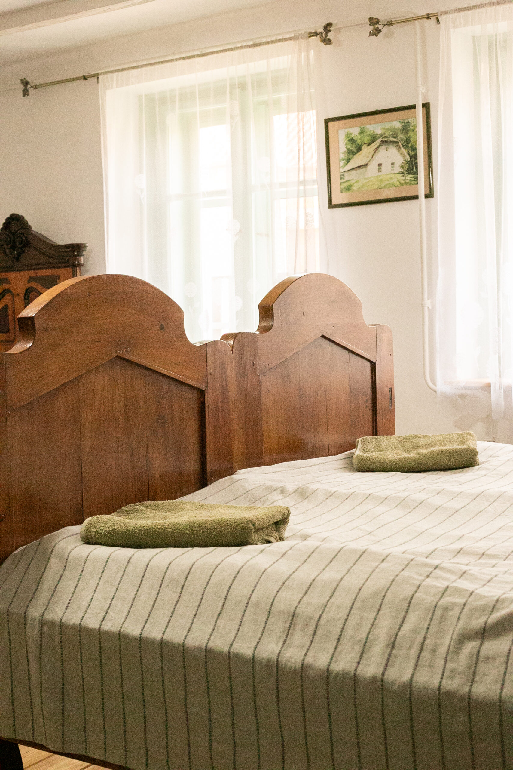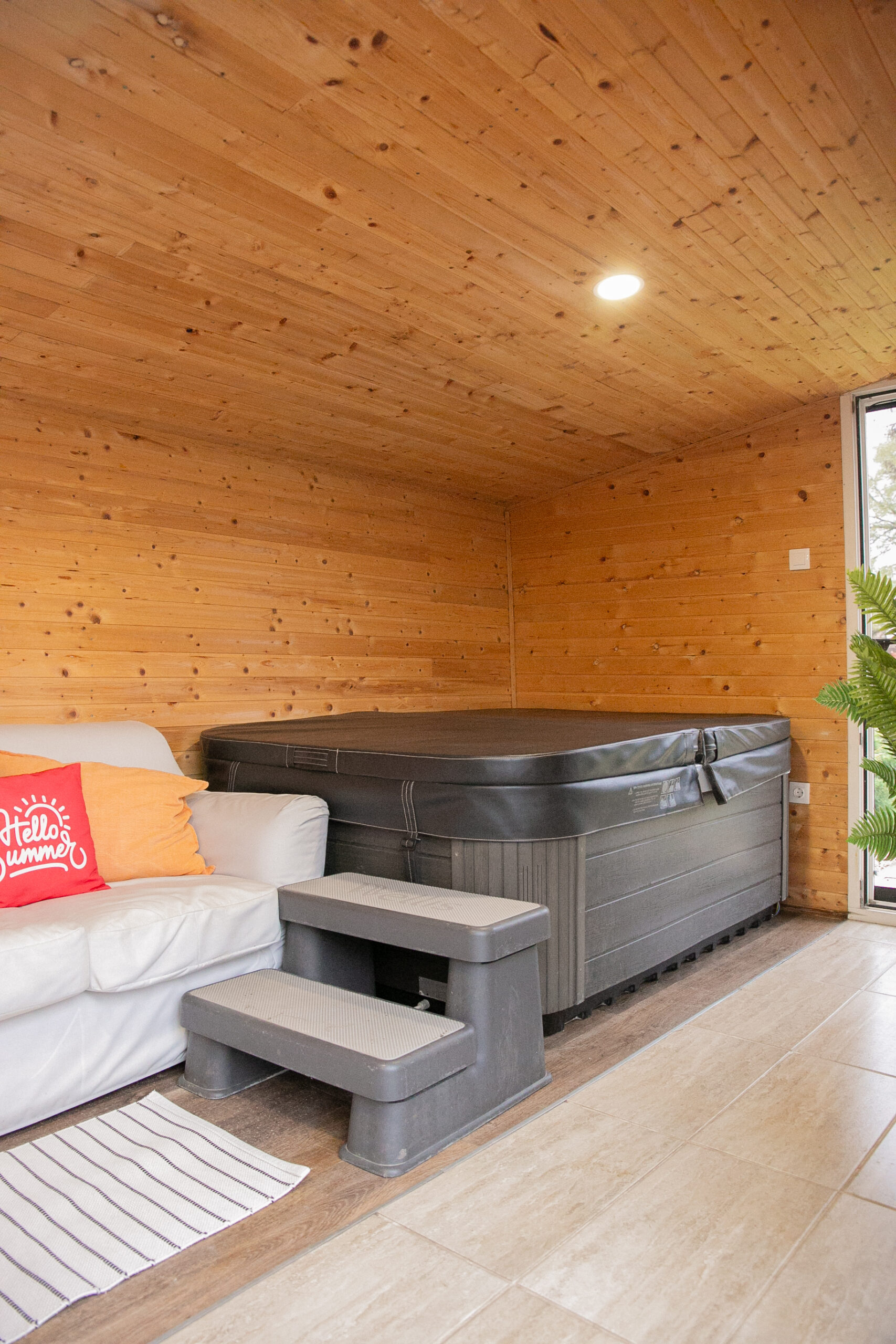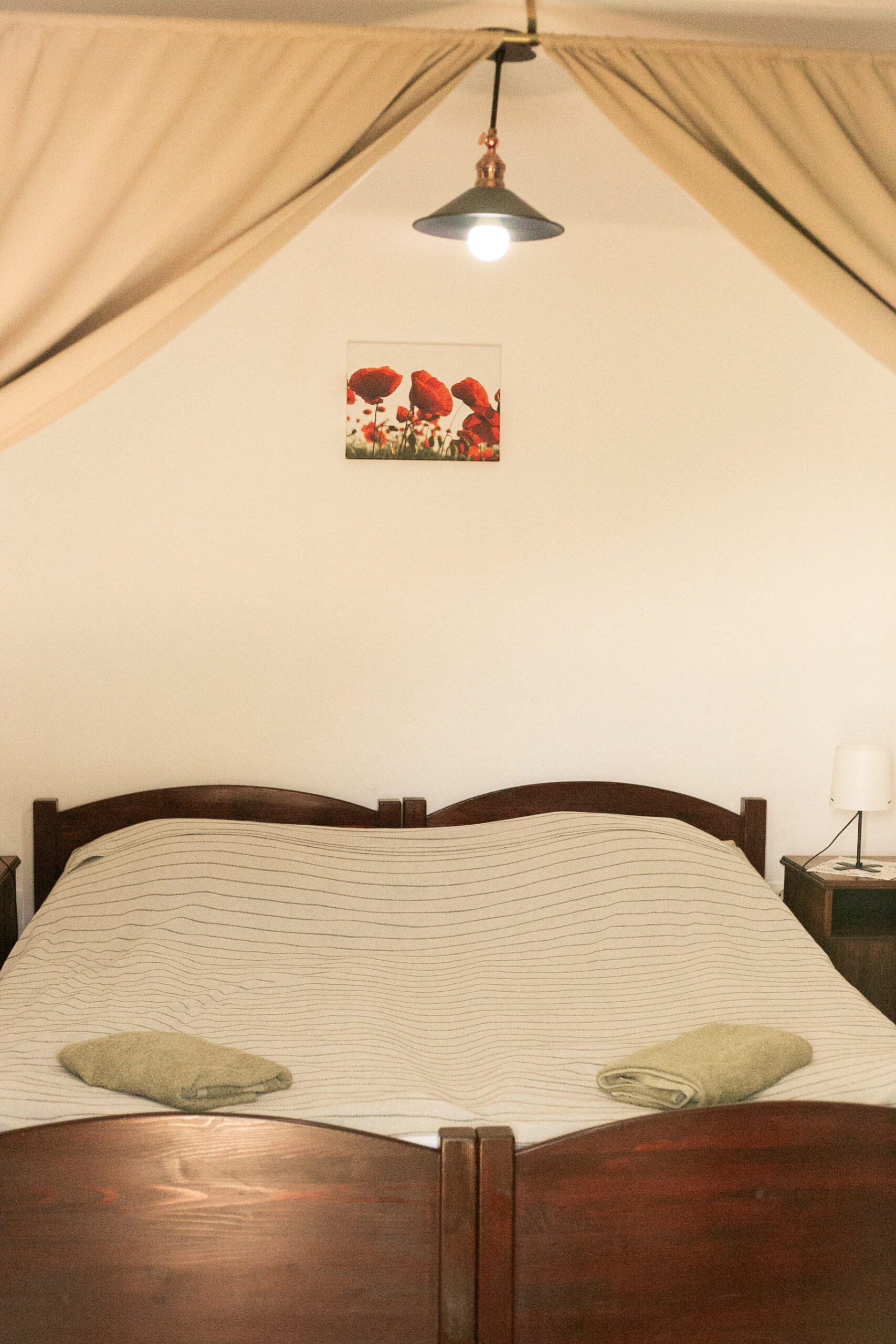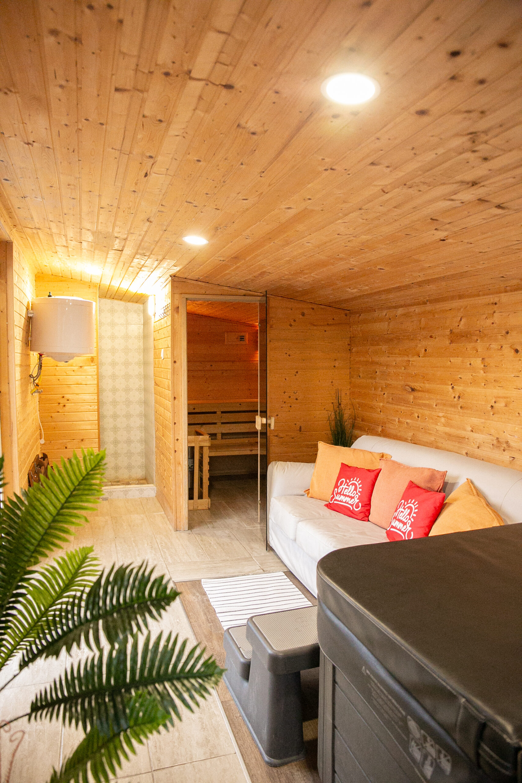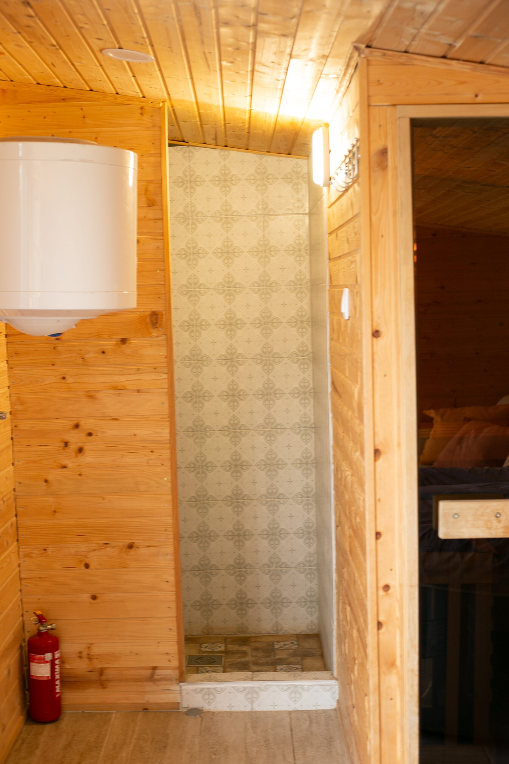 Kültéri fedett teraszon a sütés-főzési lehetőség szintén adott. A ház 6+1 főnek biztosít kényelmet. 2 hálószoba található benne és 1 nappali. A szobák egymásból nyílnak, a tisztaszoba 1 db franciaágyat és 2 db önálló ágyat tartalmaz, szekrényekkel. A középső szobában fiókos szekrény, fogas és 2 db összetolható 90×200-as ágy található, az intimitást egy leereszthető elválasztó vastag függönnyel oldottuk meg, így aki reggel tovább szeretne aludni, őt nem zavarja belső szobában lakók, ők gond nélkül ki tudnak menni a nappaliba, konyhába. A szobákat zárható ajtó választja el egymástól. A nappaliban 6-7 fő kényelmesen elfér egy társasjáték, vagy egyéb családi összejövetel alkalmával. 2 pár, vagy 2 család is komfortosan elfér természetesen a max. létszámunk tekintetében.