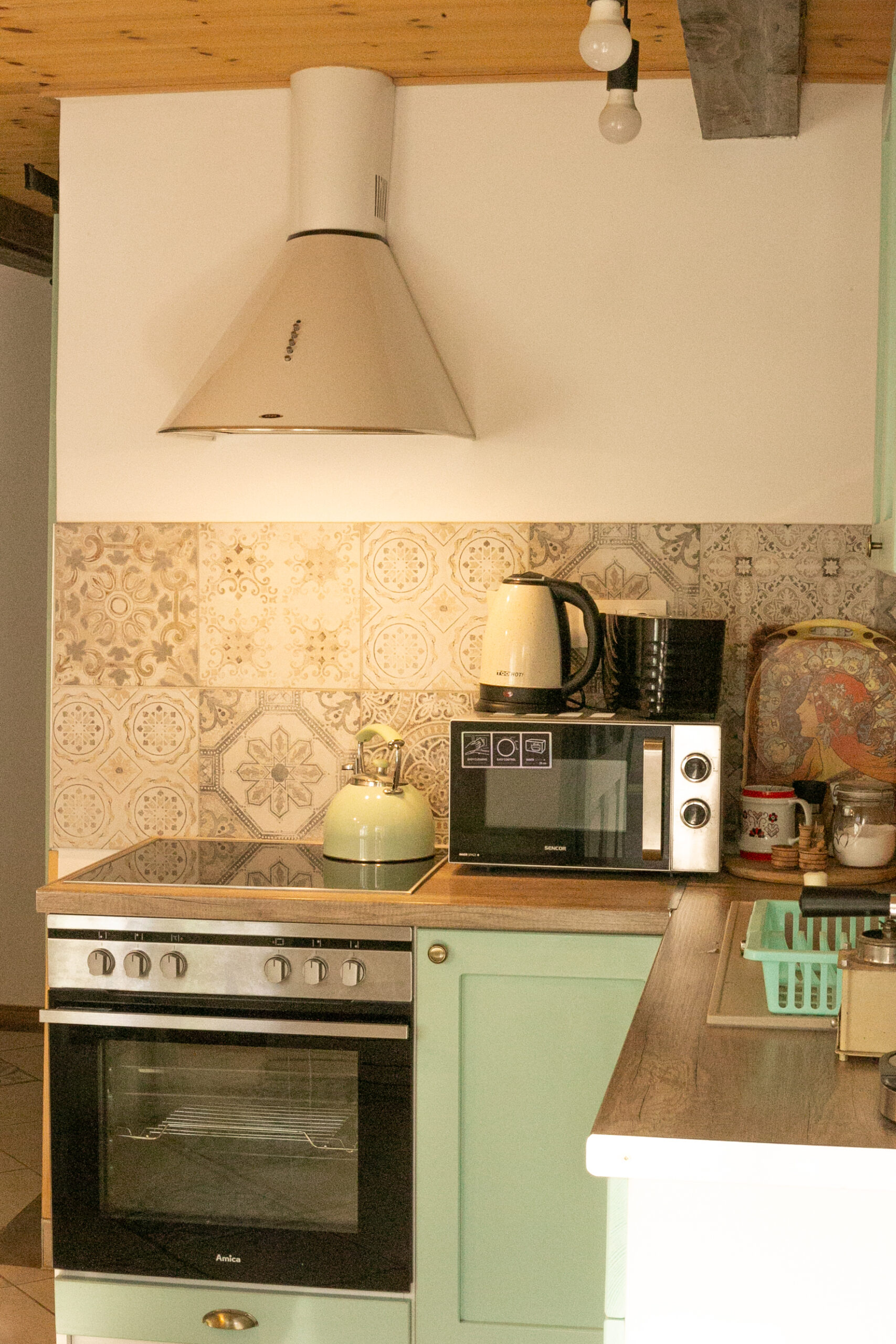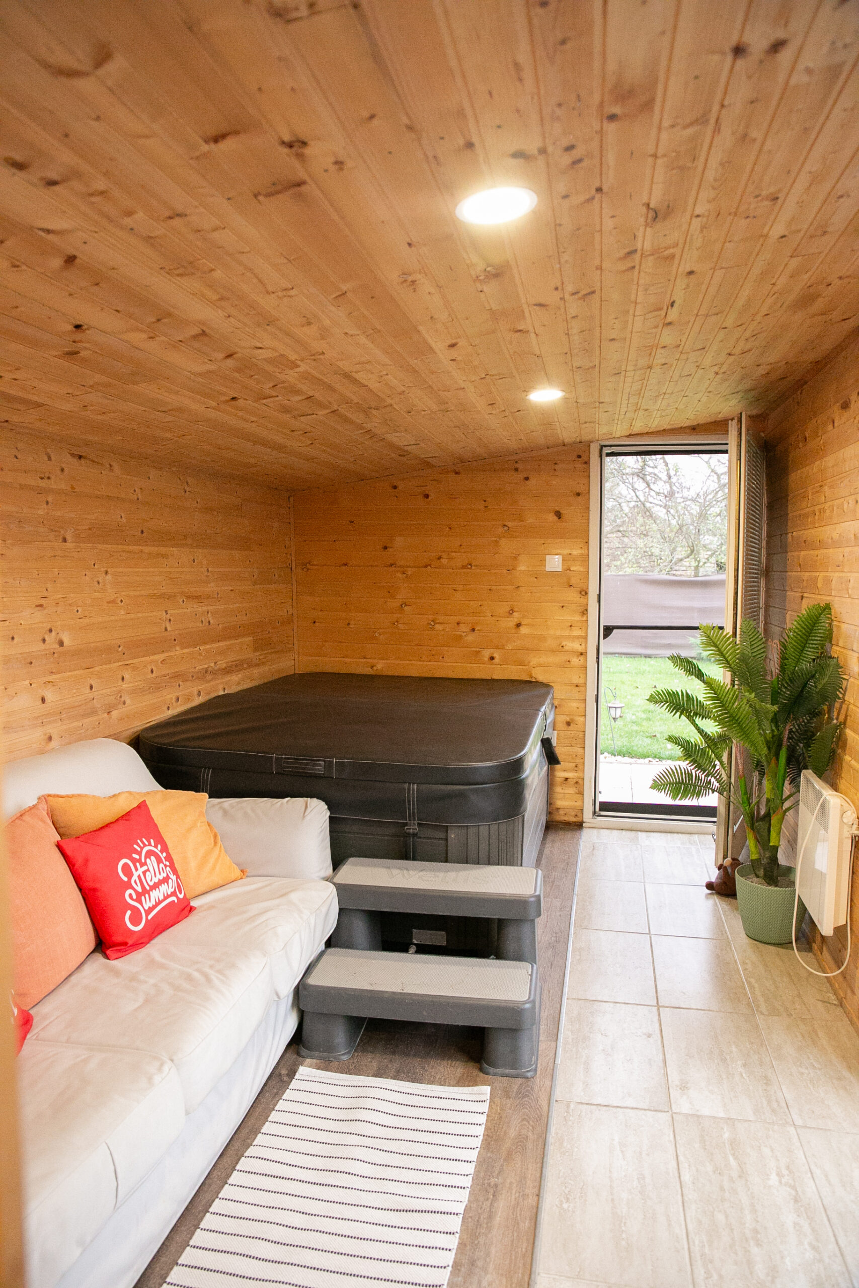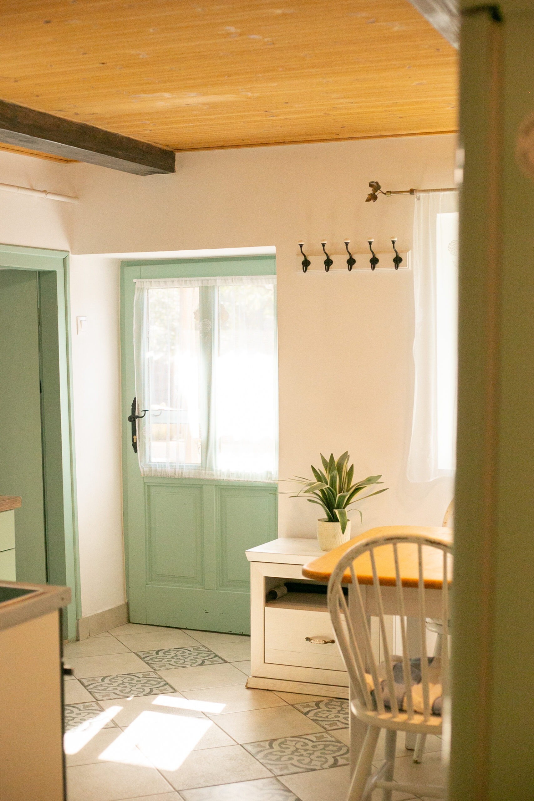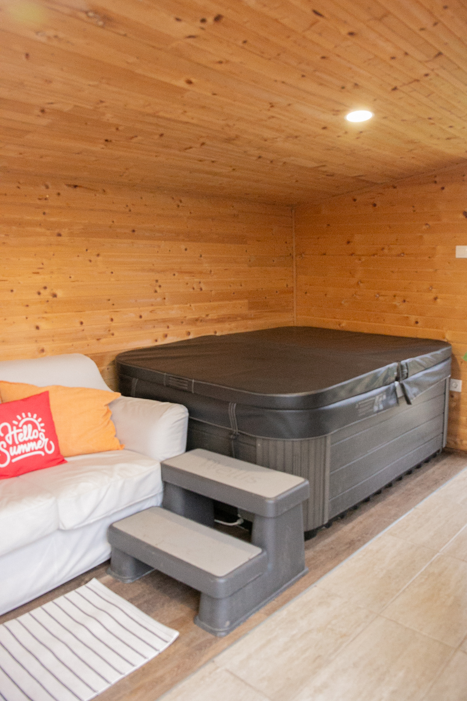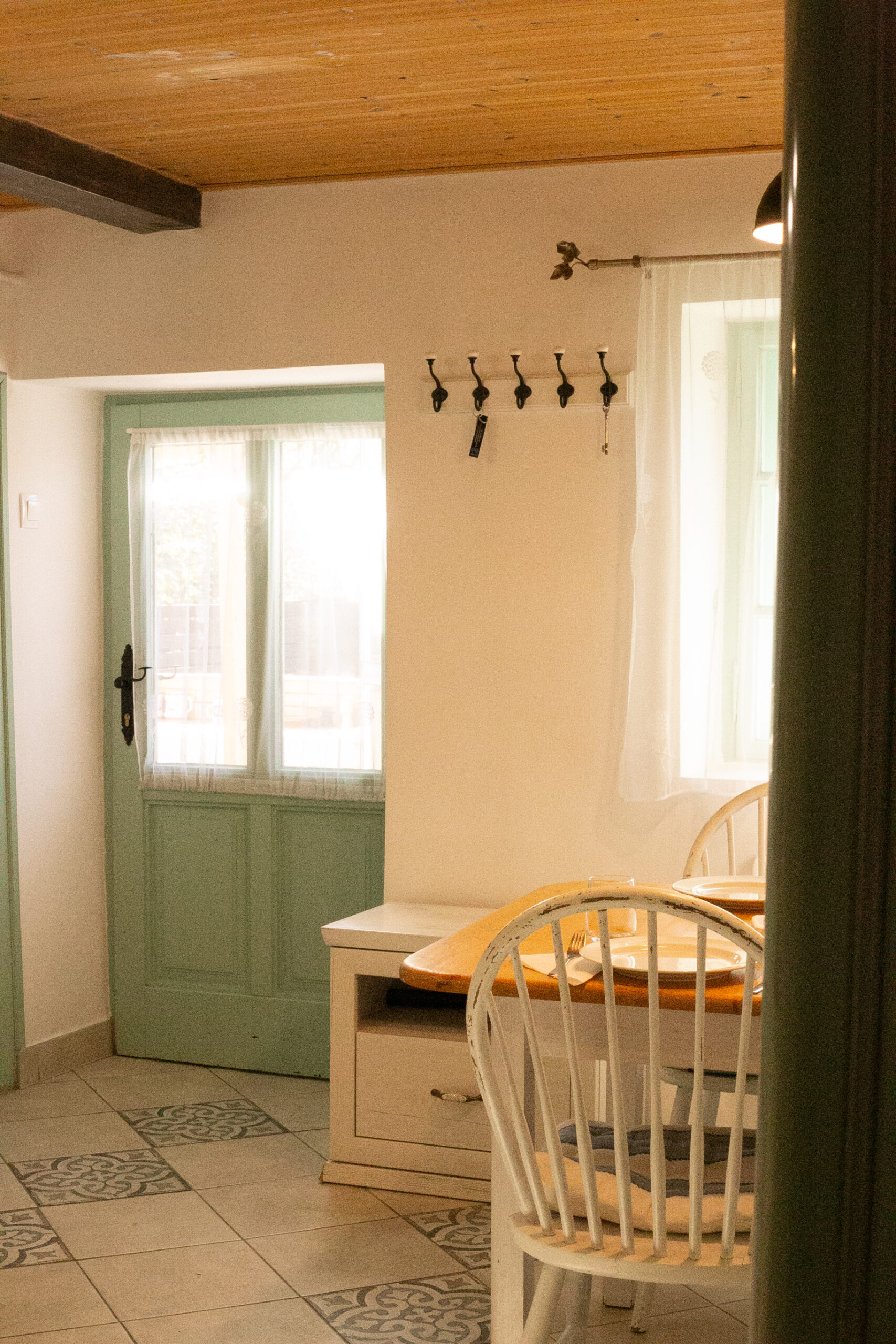 Kültéri fedett teraszon a sütés-főzési lehetőség szintén adott. A ház 6+1 főnek biztosít kényelmet. 2 hálószoba található benne és 1 nappali. A szobák egymásból nyílnak, a tisztaszoba 1 db franciaágyat és 2 db önálló ágyat tartalmaz, szekrényekkel. A középső szobában fiókos szekrény, fogas és 2 db összetolható 90×200-as ágy található, az intimitást egy leereszthető elválasztó vastag függönnyel oldottuk meg, így aki reggel tovább szeretne aludni, őt nem zavarja belső szobában lakók, ők gond nélkül ki tudnak menni a nappaliba, konyhába. A szobákat zárható ajtó választja el egymástól. A nappaliban 6-7 fő kényelmesen elfér egy társasjáték, vagy egyéb családi összejövetel alkalmával. 2 pár, vagy 2 család is komfortosan elfér természetesen a max. létszámunk tekintetében.